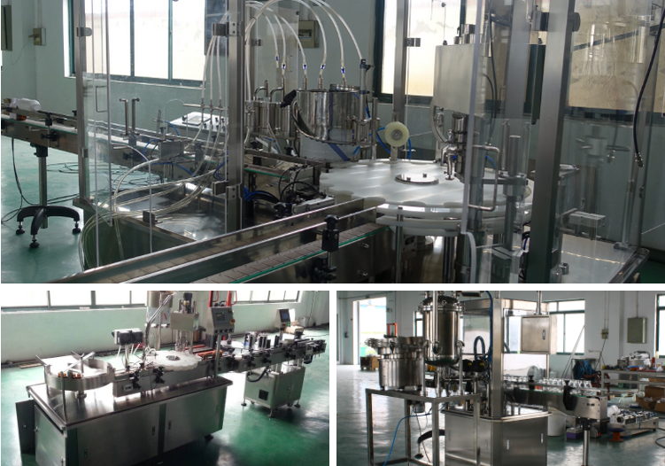 Подача бутылок на стол для подачи бутылок --- Автоматическая разливка продуктов --- Автоматическая сортировка и подача крышек --- Автоматическая укупорка крышек --- Автоматическая подача готовой продукции --- Автоматическая маркировка бутылок