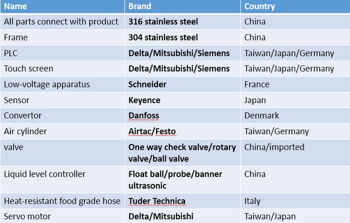 1. Материал всех частей, через которые проходит продукт, может быть оборудован в соответствии с характером продукта, поэтому материалы идеально подходят для заполнения большинства продуктов с сильной коррозионной активностью.